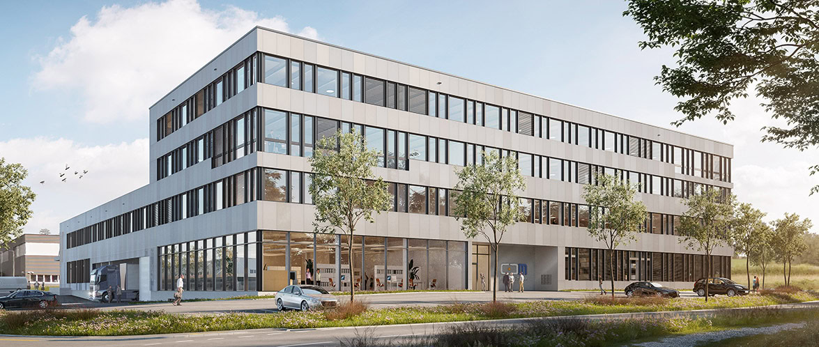Neubau Gewerbetrakt mit Büro, Produktion, Lager und Einstellhalle